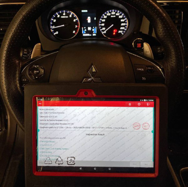 کارشناسی فنی: تست فنی با دیاگ تخصصی میتسوبیشی (Mut III) انجام شد تست موتور عدم پاشش منظم انژکتور ها ، ضعف در تسمه دینام - تست گیربکس CVt فاقد خطا( نیاز به تعویض روغن گیربکس) - تست دیفرانسیل 4WD lock فاقد خطا -تست سیستم تعلیق فاقد خطا - صحت کارکرد خودرو فاقد خطا - تست آپشن ها فاقد خطا - لنت جلو ۵۰٪ لنت عقب ۳۰٪ تخمین کارکرد روغن ۳۰۰۰ تا