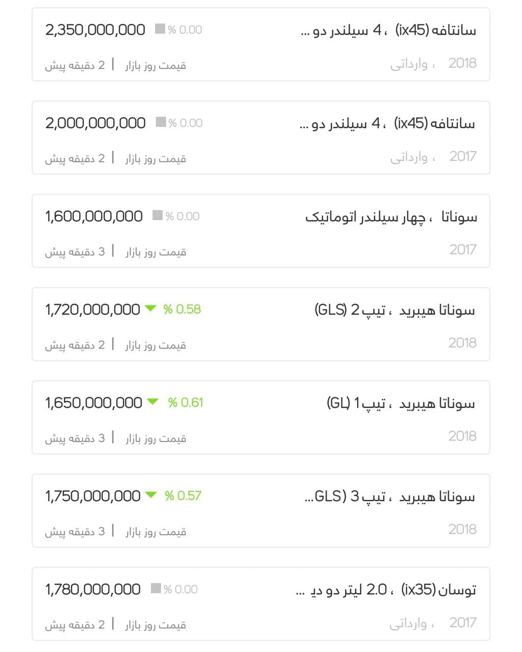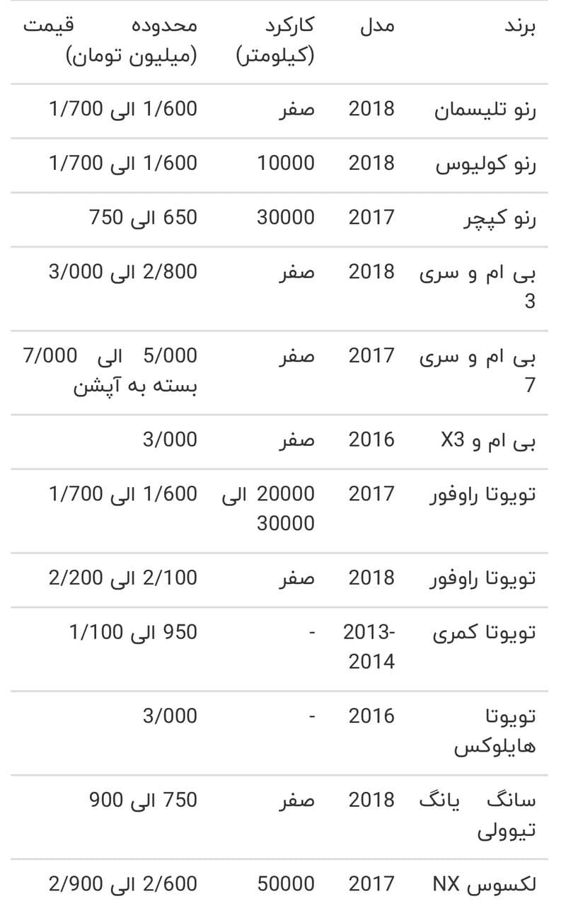 گزارش قیمت خودرو های وارداتی